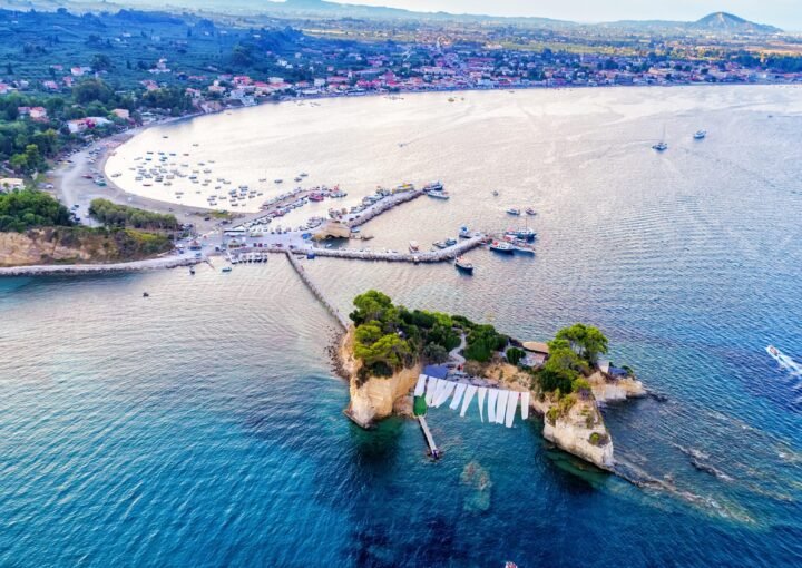 Argassi is a lively coastal resort located approximately 4 kilometers south of Zakynthos Town. It’s perfect because it’s easily accessible from the town and well-connected to destinations across the island.